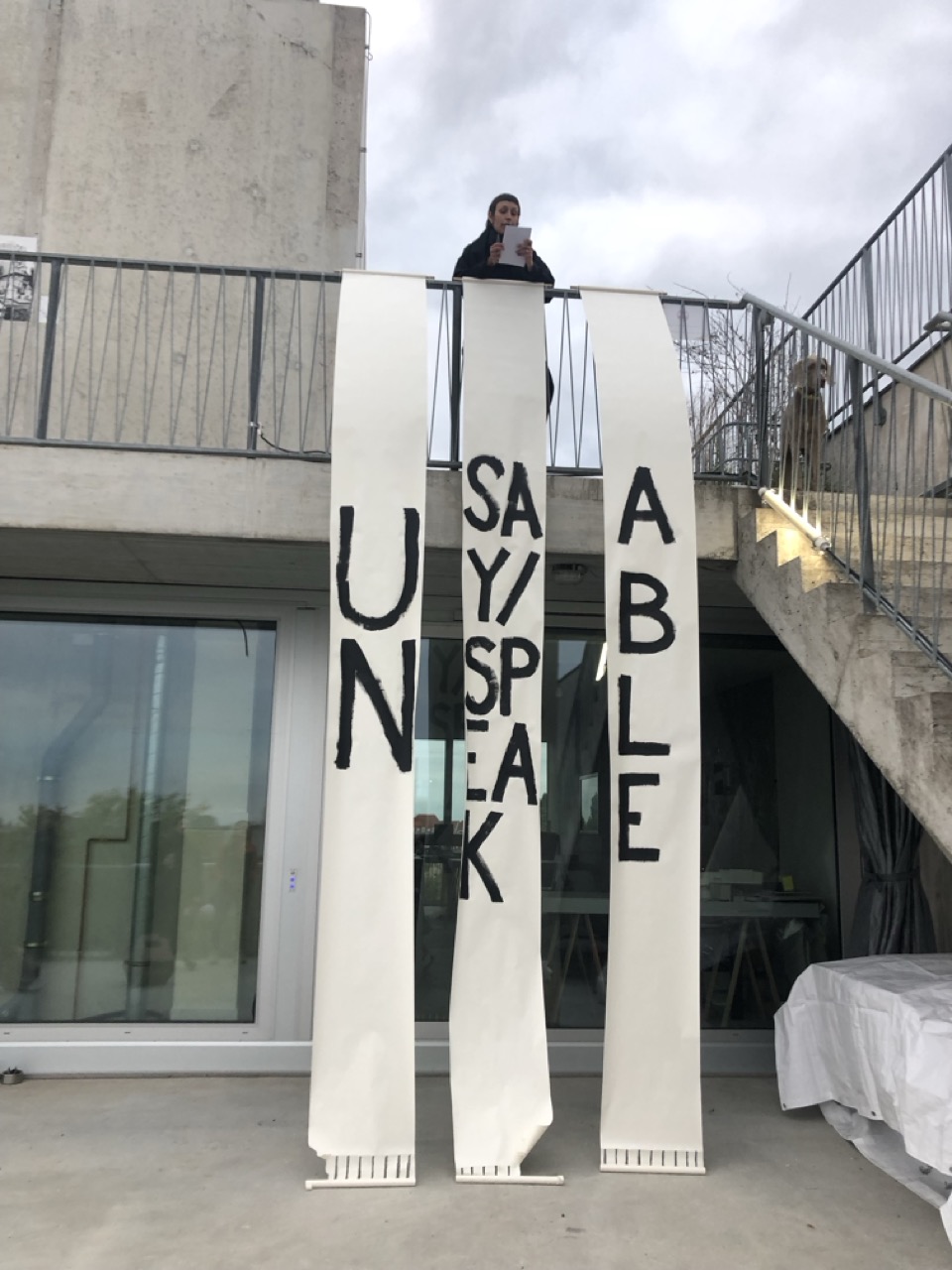 ‘Watzizizezitsch. Rebisch, Zwog. Über Sprachen und Stimmen’, reading performance and Installation, Kunstraum D21 (Leipzig, 2020) ‘iilwimi lipsing’, reading performance and installation for Paperworks Magazine, Peer Gallery (London, 2018)