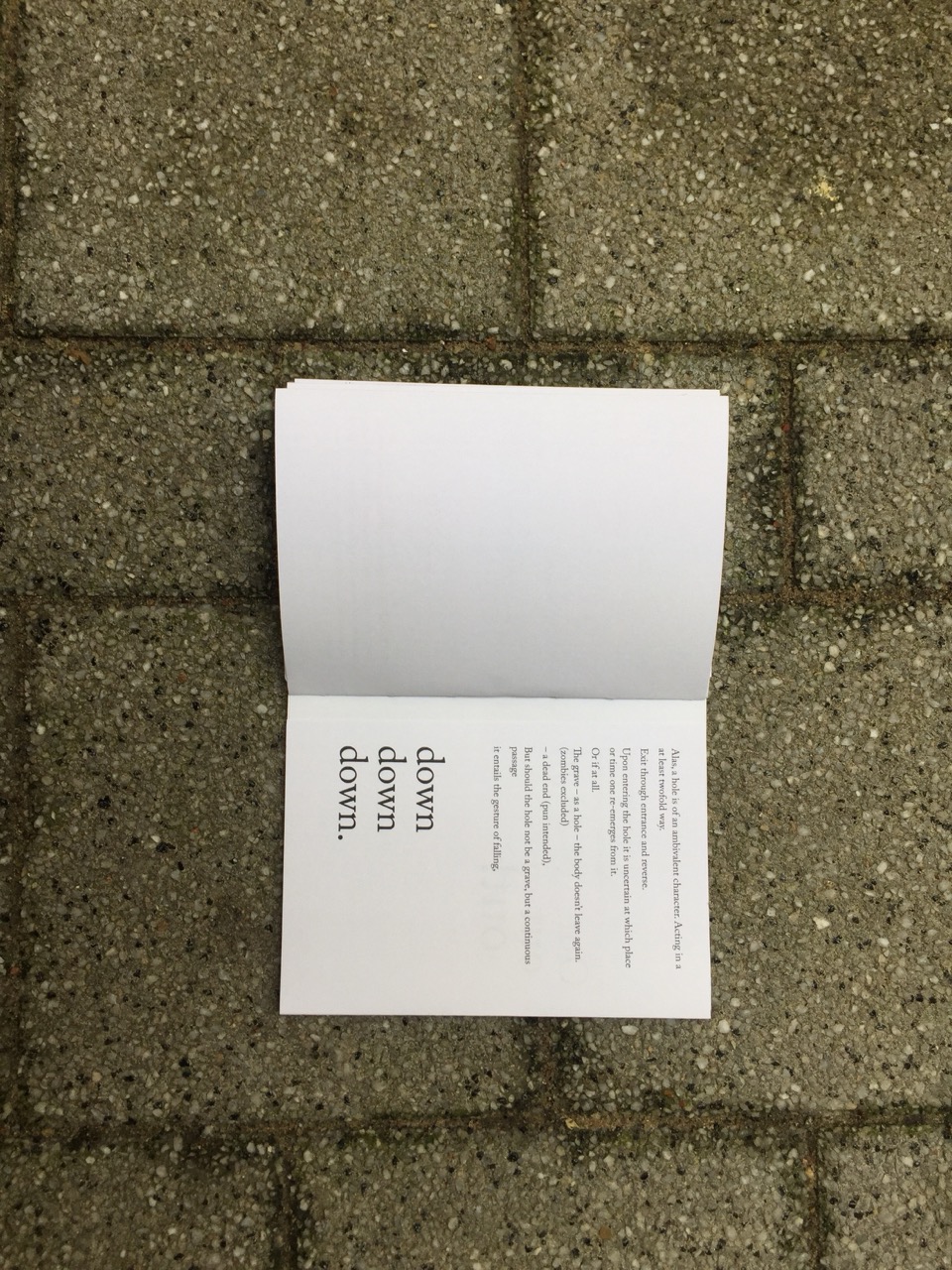 ‘Whenever the Heart Skips a Beat’, curated by Gislind Köhler and Marenka Krasomil, reading performance with props, and publication, Mehringplatz (Berlin, 2017)